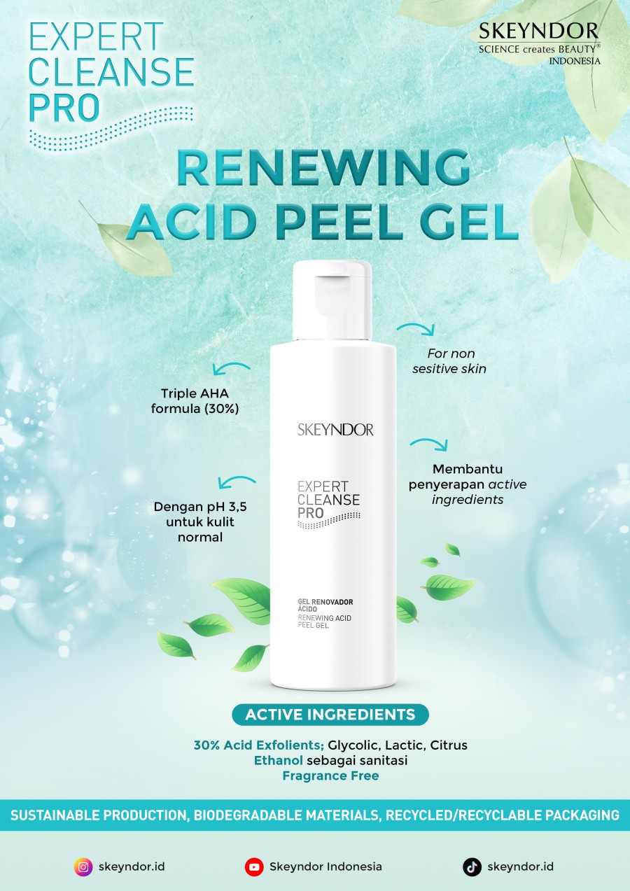 Expert Cleanse Pro - Renewing Acid Peel Gel adalah cairan peeling yag soft dan aman untuk digunakan dirumah. mempunyai fungsi untuk mengangkat sel kulit mati, membersihkan kotoran pada kulit, menyiapkan kulit untuk treatment lanjutan. dengan kandungan utama Triple AHA formula (30%). cocok untuk jenis kulit normal (non sensitive skin), pH 3,5