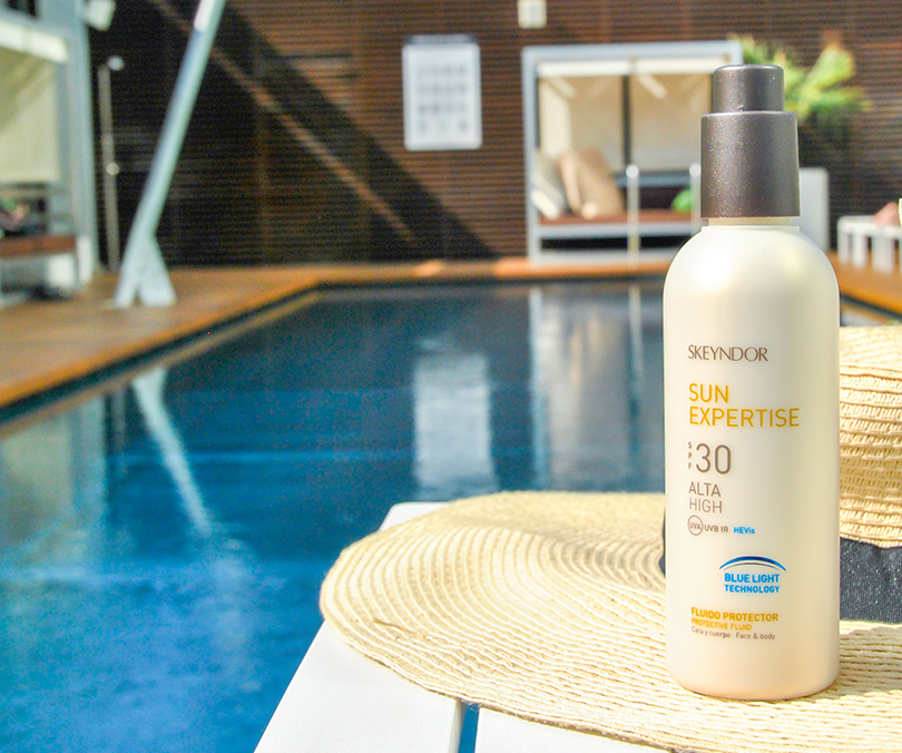 Sunscreen face and body cair dengan perlindungan lengkap untuk UVB, UVA, HEV and IR.
