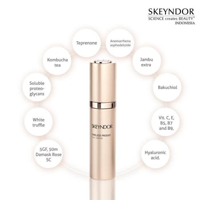 SKEYNDOR Timeless Prodigy The Serum, Serum yang memberikan kelembutan,kenyamanan, dan Hidrasi yang tahan lama. Tekstur ringan dan halus pada wajah Ideal untuk semua jenis kulit. Di Kembangkan Dengan Teknologi Multigenik Terbaru, Yang Mampu Mengubah Waktu Di Kulit Anda. Skincare Dimensi Baru Yang Menstimulasi Ekspresi Genetik Muda, Memperlambat Penuaan Sel Dan Membantu Mereka Memulihkan Kondisi Awet Muda